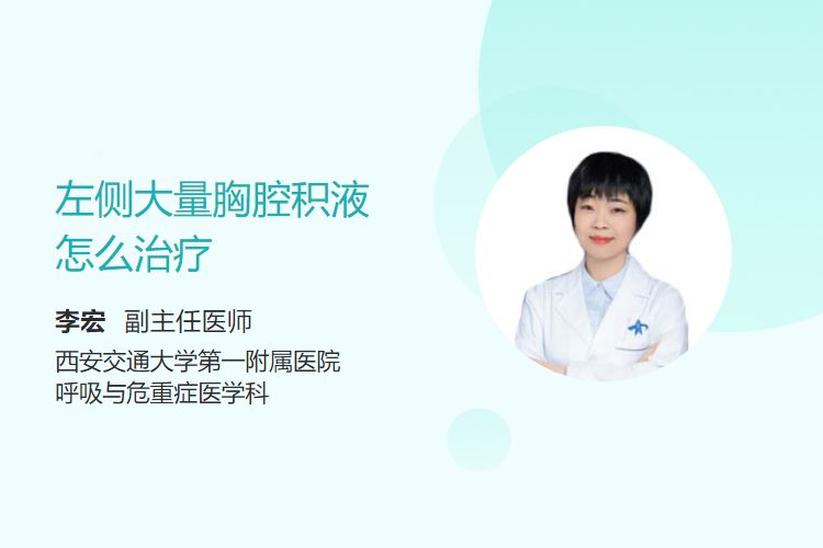 左側(cè)大量胸腔積液的治療包括胸腔穿刺術(shù)、胸腔閉式引流術(shù)、化學(xué)性胸膜固定術(shù)、手術(shù)治療等。
