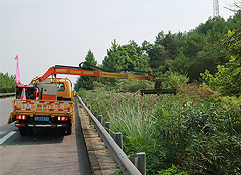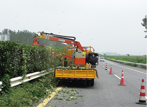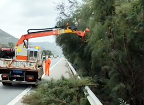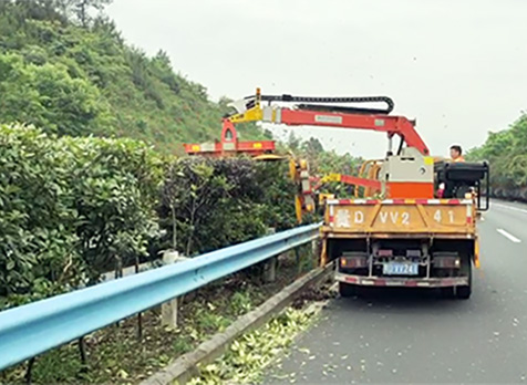 Using a 1.8-ton light truck for carrying, it can trim the median green fence, high branches and thick branches on the right side of the highway